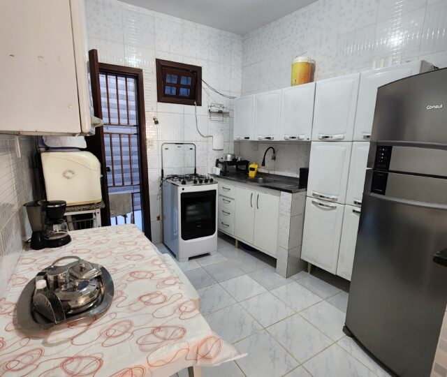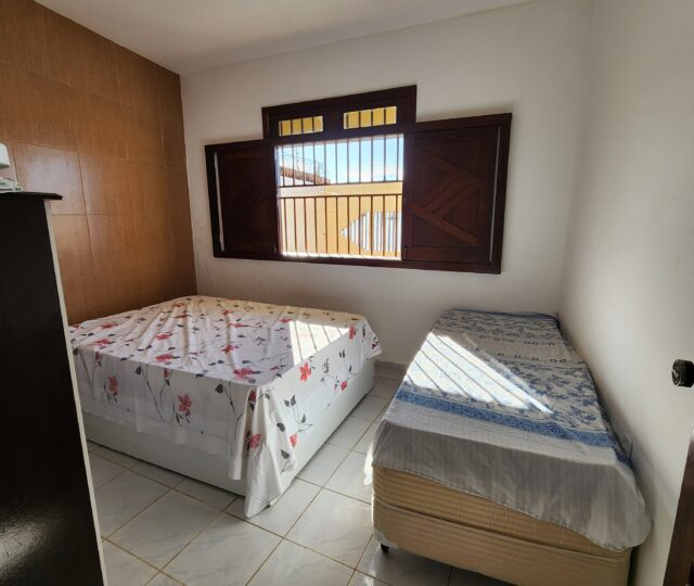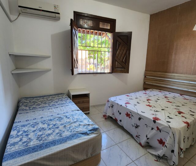 Totalmente mobiliada, a casa conta com ar condicionado, ventiladores, fogão, geladeira, utensílios de cozinha, sofá, mesas e cadeiras. Espaçosa e arejada, tem capacidade para acomodar até 10 pessoas.