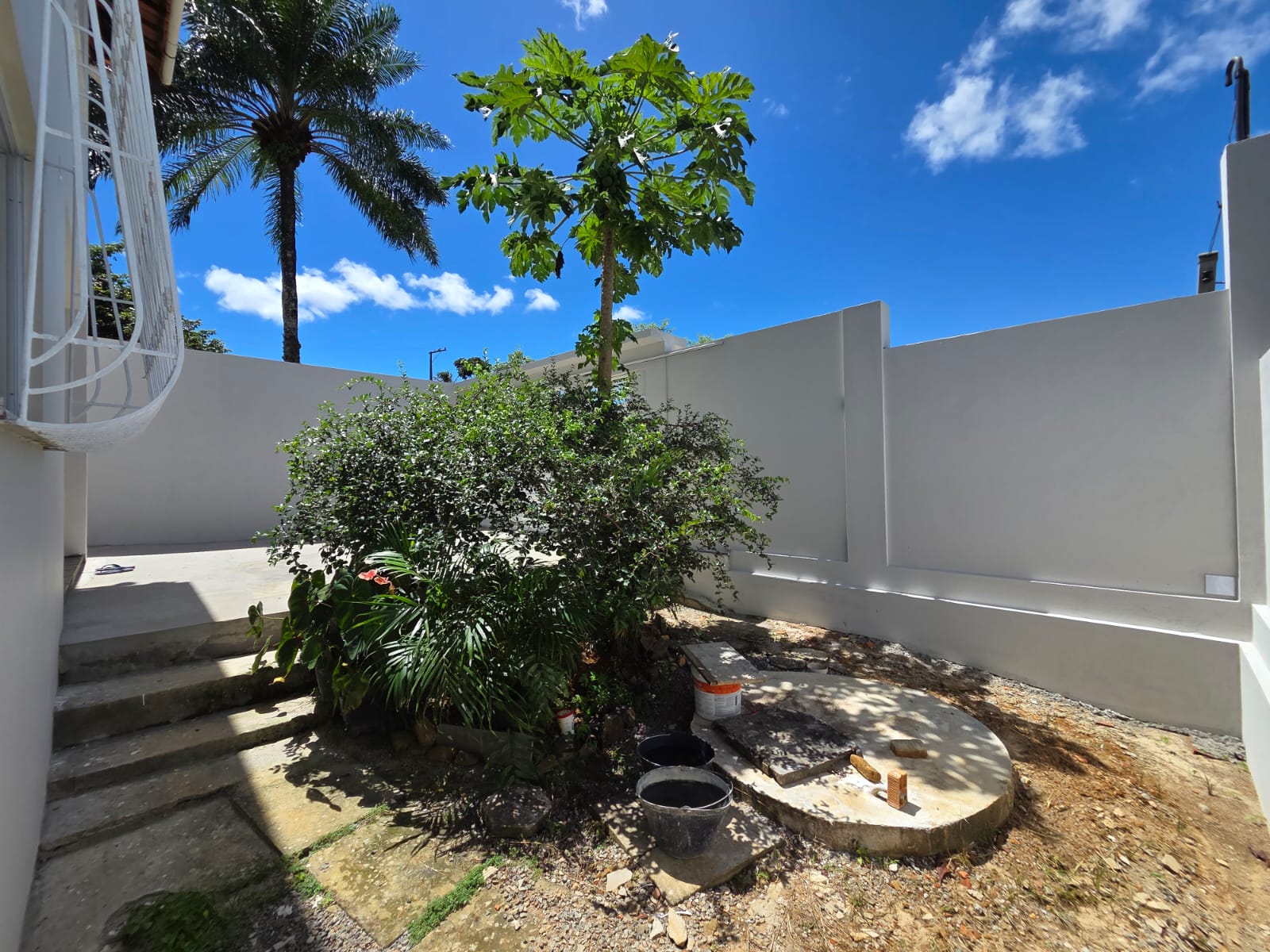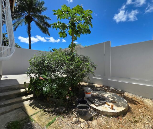 - Quintal amplo com 9m (aberto), pronto para o seu projeto de lazer ou jardinagem.
