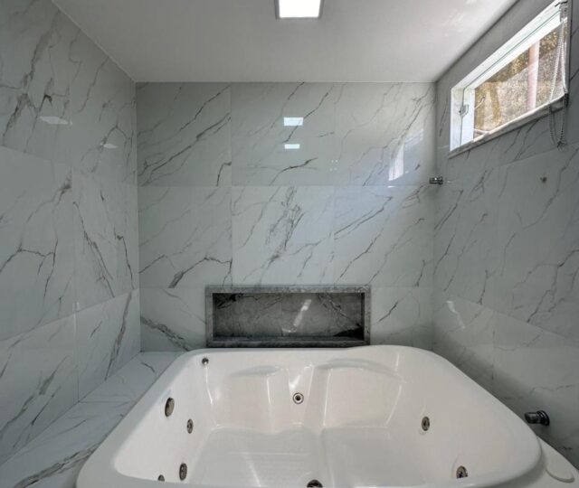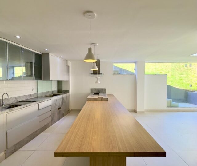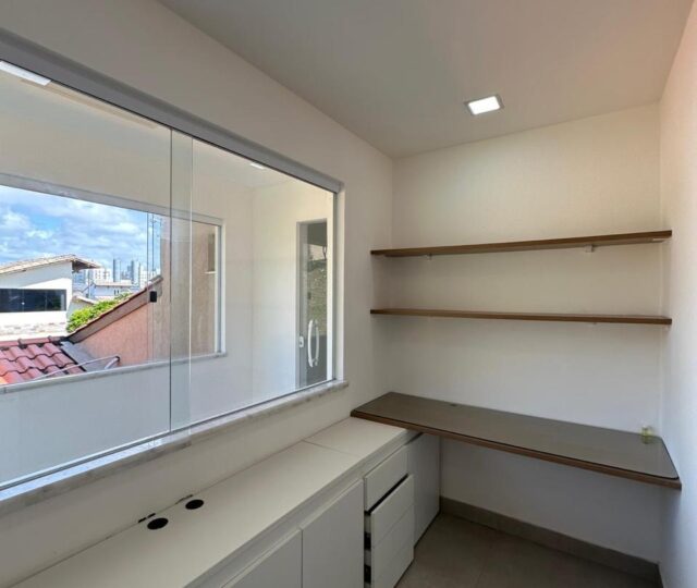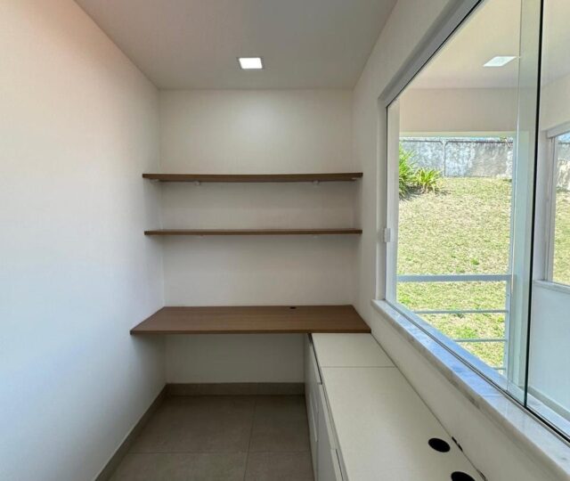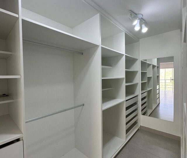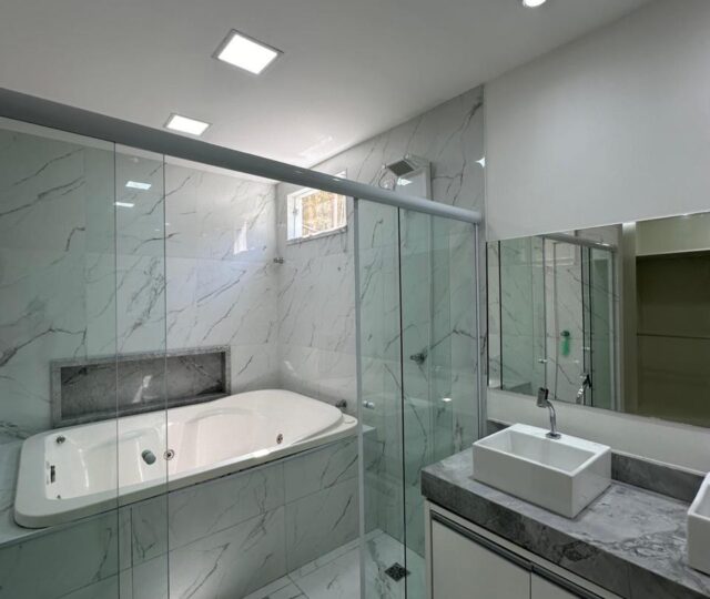 São quatro quartos e uma dependência completa de empregada, sendo três suítes. A suíte master é um destaque à parte, com closet grande, pia dupla, chuveiro duplo e uma banheira para duas pessoas, oferecendo um ambiente de relaxamento e sofisticação. Conta ainda com um escritório planejado para duas pessoas, ideal para quem trabalha em home office.