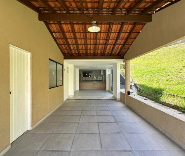 O imóvel conta com sala com pé direito alto em dois ambientes, proporcionando luminosidade natural e sensação de amplitude. Possui banheiro social, despensa interna, cozinha de apoio interna e uma cozinha gourmet externa equipada com churrasqueira e despensa, perfeita para receber amigos e familiares.